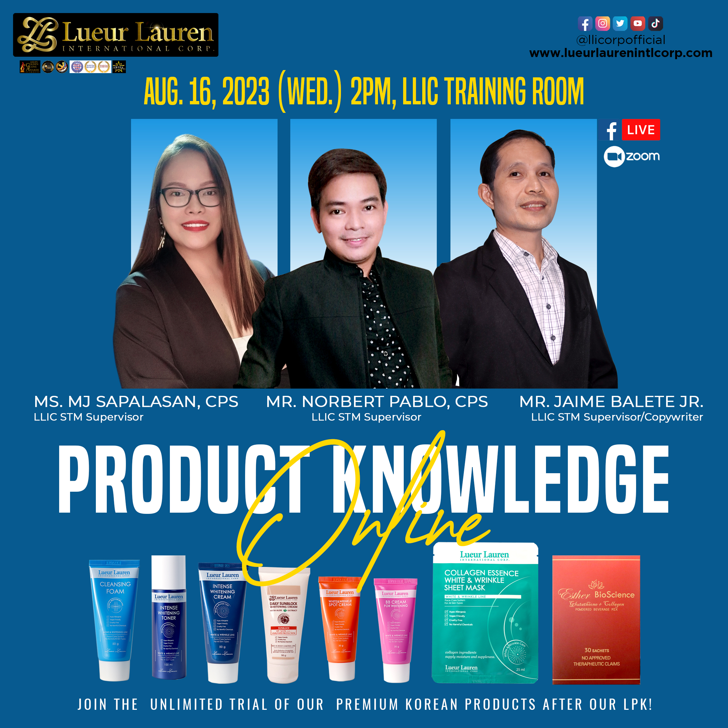 We are inviting everyone to attend our LLIC Product Knowledge Presentation on Wednesday, August 16, 2023, 2PM live via FB, and meet our STM Team, Mr. Norbert Pablo, Ms. MJ Sapalasan and Mr. James Balete.