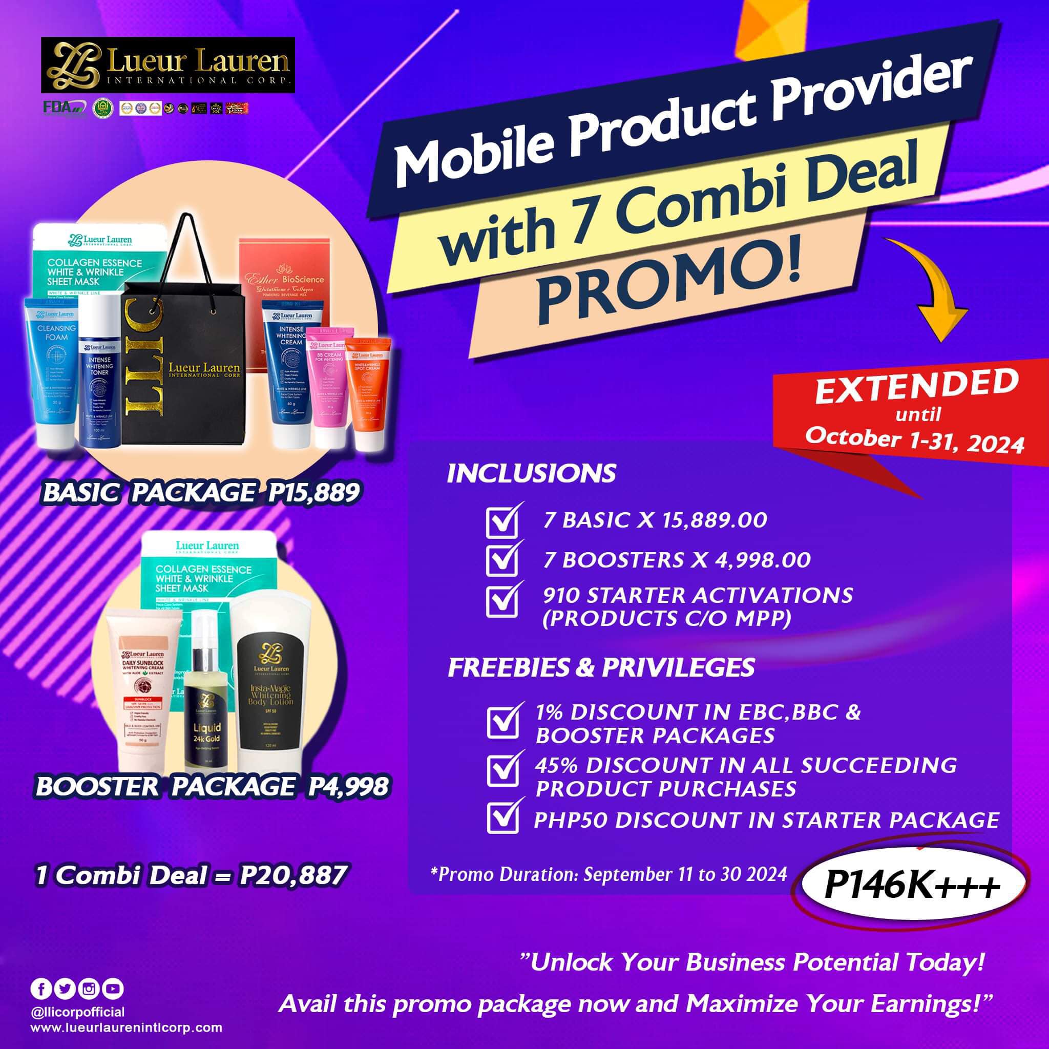 Our Mobile Product Provider (MPP) package with 7 Combi deal Promo has been extended from October 1 to 31, 2024 for just P146k only. Take advantage of incredible discounts, special offers, and unbeatable deals for a limited time in.